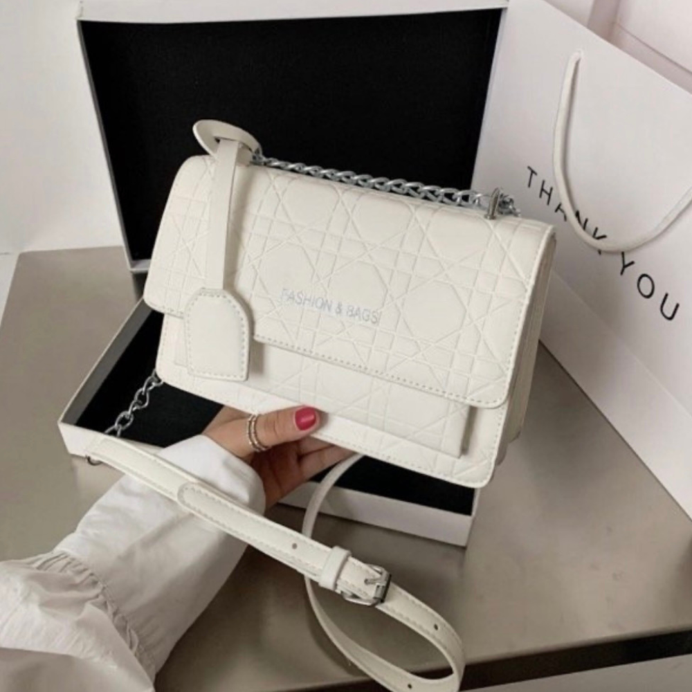 Diseño moderno y minimalista con acabado acolchado geométrico. Incluye correa regulable con cadena metálica que le aporta un toque sofisticado. Compacto, versátil y fácil de combinar, es ideal para uso diario o salidas especiales. Disponible en 3 colores diferentes para que elijas el que mejor va con tu estilo.