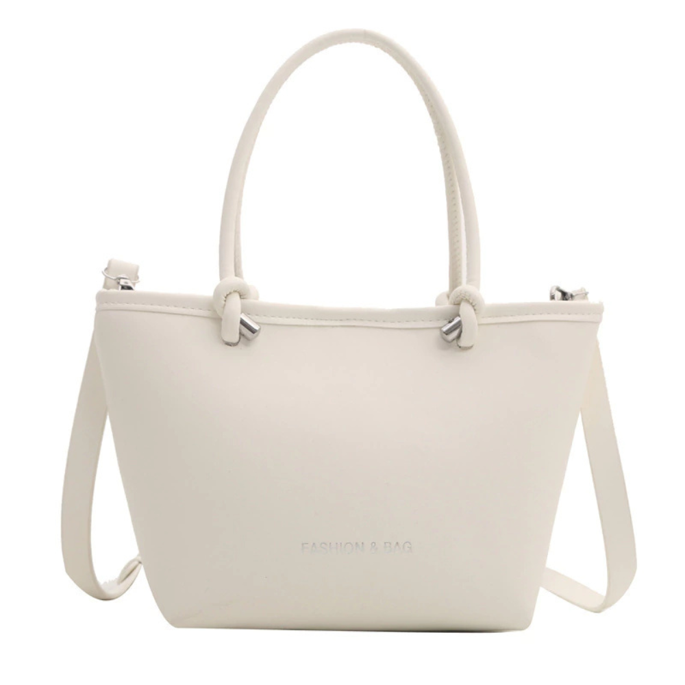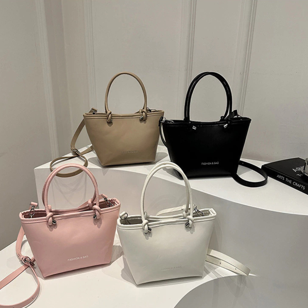 Diseño compacto y femenino, ideal para looks delicados y modernos. Con asas cortas decoradas con detalle de nudo y correa larga regulable, combina practicidad con estilo. Perfecto para llevar lo esencial en salidas diarias o eventos casuales