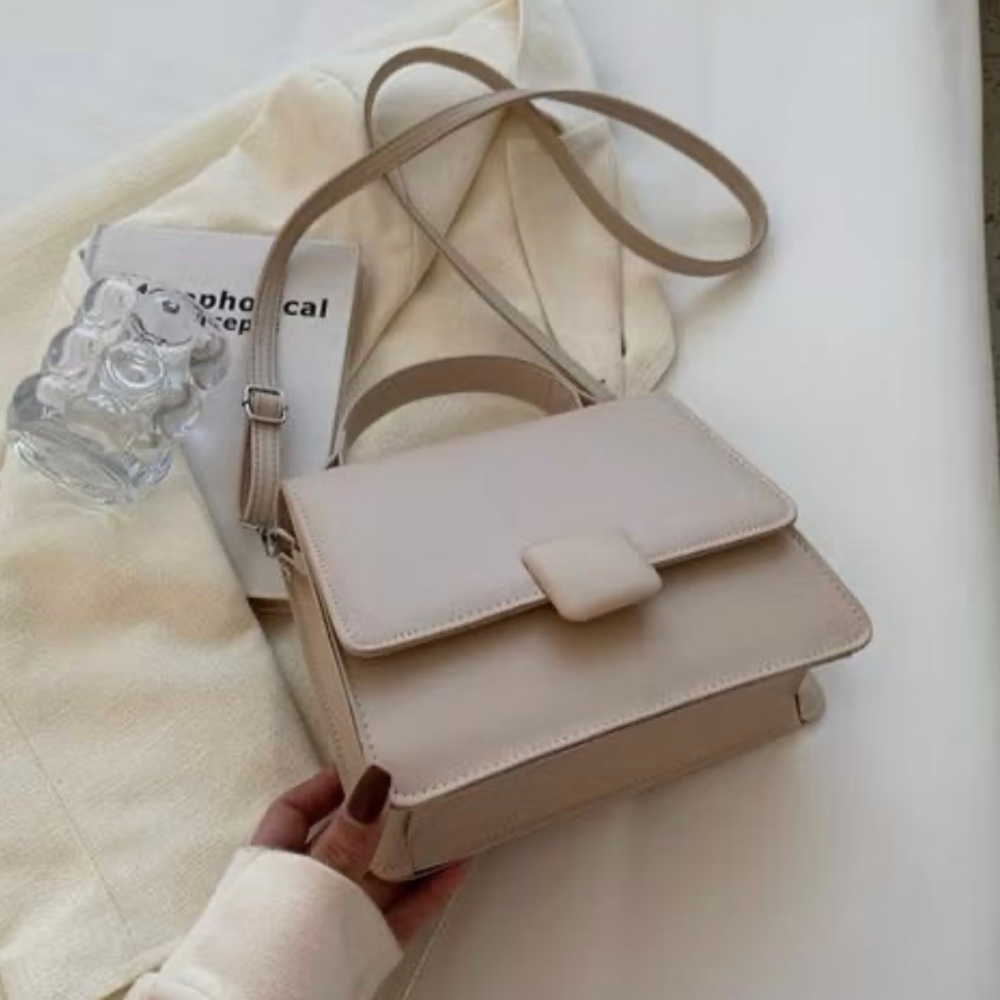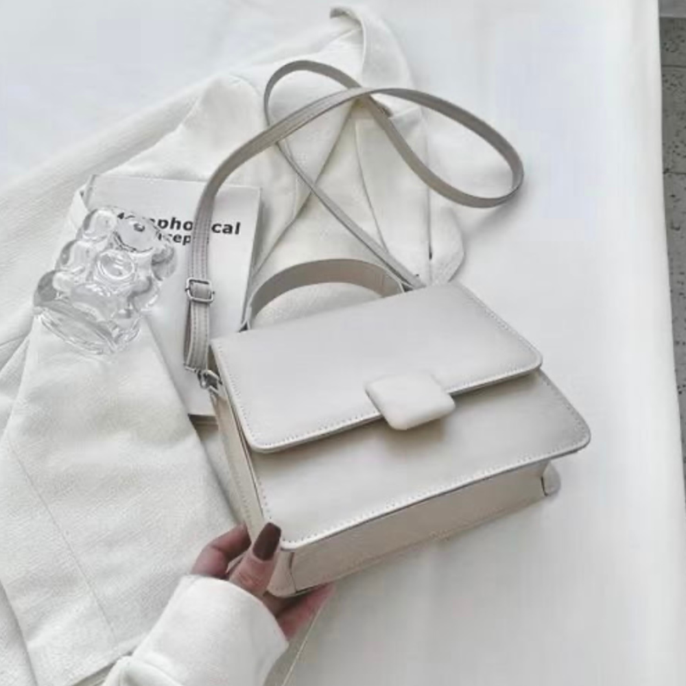 Minimalista y elegante, con diseño estructurado en tono blanco que aporta sofisticación a cualquier look. Su formato compacto con solapa y correa regulable lo convierten en el accesorio ideal para salidas casuales o eventos especiales donde la sencillez marca la diferencia.