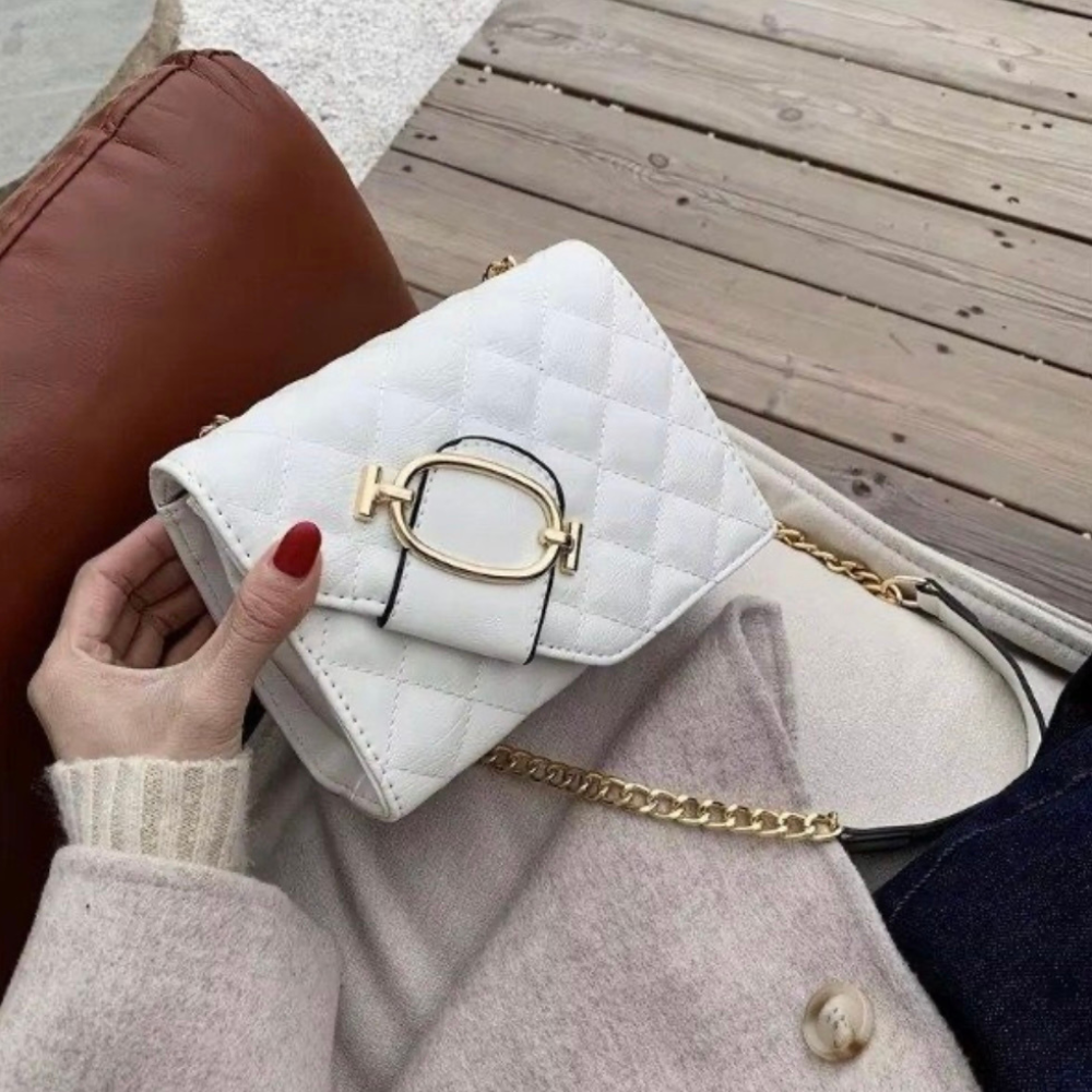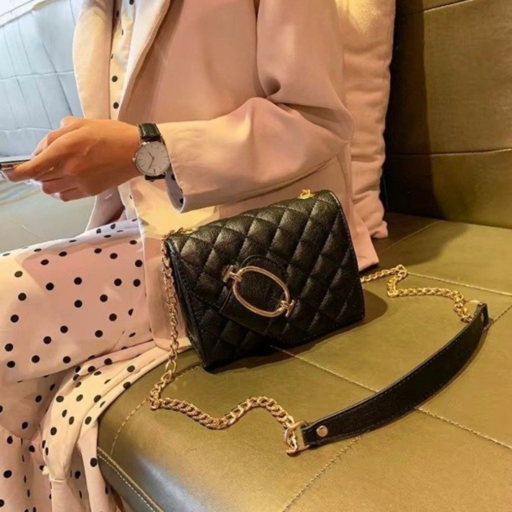 Clásico y sofisticado, con diseño acolchado en rombos y cadena dorada que aporta un toque de lujo. Su formato compacto y elegante lo convierte en el accesorio perfecto para salidas nocturnas o eventos especiales. Un básico infaltable que combina estilo y practicidad.
