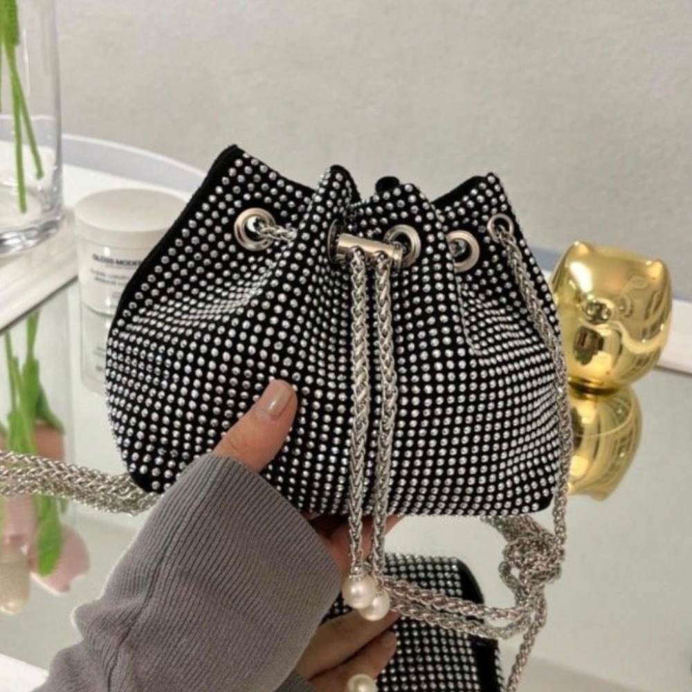 Elegante y llamativo, con diseño estructurado en negro adornado con apliques de strass que aportan brillo sutil. Su solapa frontal destaca con el detalle metálico de la “W” en cristales, que lo convierte en un accesorio sofisticado y glamuroso. Ideal para looks de noche o eventos especiales.